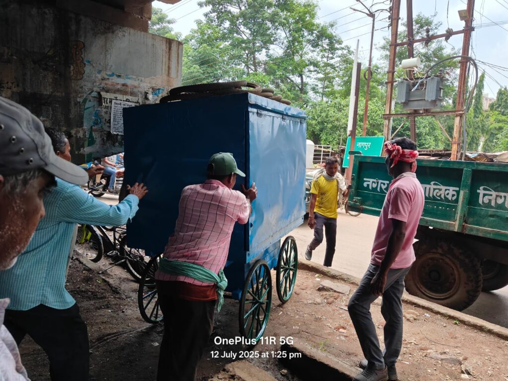 राजनांदगांव 12 जुलाई। नगर निगम, जिला प्रशासन व यातायात की टीम शहर को व्यवस्थित एवं अतिक्रमण मुक्त करने अभियान चला रही है। अभियान के तहत् आज प्रशासन की अतिक्रमण हटाओं टीम फ्लाई ओव्हर के नीचे पुराना बस स्टैण्ड चौक से भगत सिंह चौक तक अतिक्रमण हटाने की कार्यवाही किए। कार्यवाही के दौरान निगम आयुक्त अतुल विश्वकर्मा उपस्थित रहकर टीम का उत्साहवर्धन कर ठेला खोमचा वालों को स्वयं हटाने समझाईस दिए।