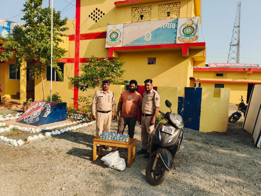 राजनंदगांव 8 नवंबर। थाना प्रभारी डोंगरगांव निरीक्षक कृष्णा पाटले द्वारा अपने थाना क्षेत्र में अपने टीम के साथ लगातार गस्त पेट्रोलिंग कर अवैध शराब बिक्री करने वालो पर नजर रख रही है। इसी क्रम में 07.11.2025 को सूचना प्राप्त हुई कि एक व्यक्ति अपने पास शराब रखा है तथा बिक्री कर रहा है की सूचना की तस्दीक कर आरोपी को शराब के साथ रंगेहाथ पकड़ने हेतु निर्देशित किया गया। जिस पर थाना डोंगरगांव की टीम द्वारा उक्त स्थान जाकर मुखबीर द्वारा बताए व्यक्ति को चिन्हांकित कर पकड़ा गया। पूछताछ में व्यक्ति ने अपना नाम प्रीतम राजपूत होना बताया शराब रखने एवं बिक्री करने के संबंध में वैध दस्तावेज की मांग करने पर आरोपी द्वारा किसी प्रकार का कोई दस्तावेज प्रस्तुत न कर टीम के सदस्यों को लगातार गुमराह करने का प्रयास किया जा रहा था। जिस पर टीम के सदस्यों द्वारा आरोपी प्रीतम राजपूत पिता दर्शन राजपूत, उम्र 38 साल, निवासी सिनेमा लाईन डोंगरगांव, थाना डोंगरगांव को गिरफ्तार कर उसके कब्जे से अवैध रूप 32 पौवा रोमियो, शोले देशी शराब कीमती 2560/- रूपये, बिक्री रकम 2000/- रूपये एवं होण्डा एक्टीवा स्कुटी किमती 50,000/- रूपये कुल जुमला 29,500/- रूपये जप्त कर आरोपी के विरूद्ध थाना डोंगरगांव में अपराध क्रमांक 351/2025 धारा 34(2) आबकारी एक्ट का अपराध पंजीबद्ध कर कार्यवाही किया गया।