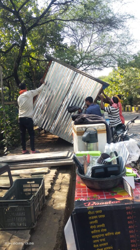 इसी तारतम्य में निगम का दस्ता निरीक्षण कर एवं शिकायत के आधार पर कार्यवाही कर रही है। कार्यवाही की कडी में गौरव पथ में फुटपाथ के उपर ठेला लगाकर व्यवसाय किया जा रहा था, जिसे हटाने समझाईस दी गयी थी। समझाईस उपरांत भी ठेला नही हटाने पर आज उप अभियंता अनुप पाण्डे, प्र.पटवारी मिलिन्द रेड्डी व गणेश झा टीम के साथ जाकर ठेला हटाए। इसी प्रकार गौरव पथ रोड में अवैध रूप से रखे ठेला हटाकर फल ठेला वालोे को हटाने समझाईस दी गई तथा अवैध विज्ञापन बोर्ड निकाला गया।