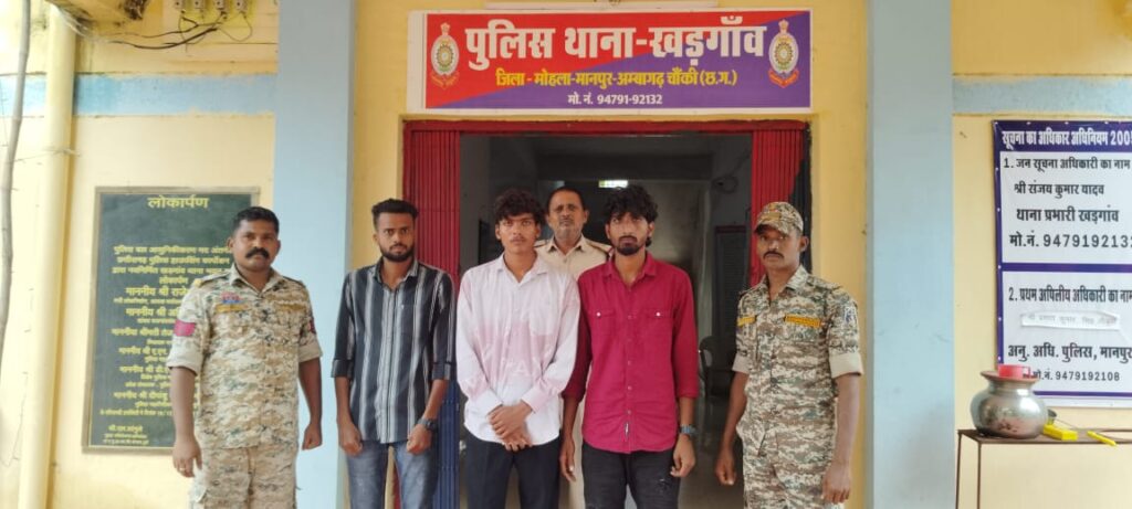 पुलिस अधीक्षक मोहला मानपुर अं० चौकी श्रीमान वाय पी सिंह के निर्देशन में व अतिरिक्त पुलिस अधीक्षक जिला मोहला मानपुर अं०चौकी डी.सी. पटेल, पुलिस अनुविभागीय अधिकारी प्रशांत कुमार सिंह पैकरा के मार्गदर्शन पर थाना प्रभारी संजय कुमार यादव थाना खड़गांव के निर्देशन में खड़गांव पुलिस द्वारा मामले का खुलासा करते हुए आरोपींगणों को गिरफ्तार किया गया है।