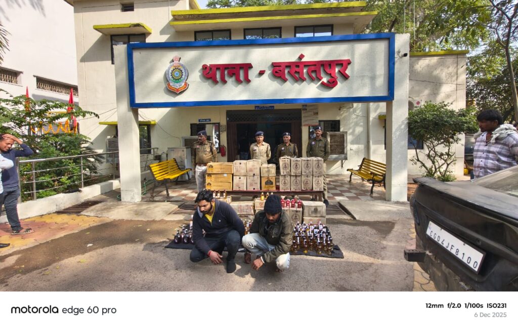 पुलिस अधीक्षक राजनादगांव सुश्री अंकिता शर्मा के निर्देश एवं अतिरिक्त पुलिस अधीक्षक राहुल देव शर्मा तथा नगर पुलिस अधीक्षक वैशाली जैन एवं पुष्पेन्द्र नायक नगर पुलिस अधीक्षक राजनांदगांव के मार्गदर्शन एवं थाना प्रभारी निरीक्षक एमन साहू के नेतृृत्व मे थाना बसंतपुर क्षेत्र में असामाजिक तत्वों एवं अवैध गांजा, शराब एवं नशीले पदार्थाे के बिक्री में संलिप्त लोगों के विरूद्व लगातार अभियान चलाया जा रहा है। इसी कडी में 05.12.2025 को मुखबीर से सूचना प्राप्त हुआ कि काले रंग की अल्टीस गाडी जो कि तुमड़ीबोड से राजनांदगांव की ओर आ रही है, जिसमें भारी मात्रा में शराब भरा हुआ है। सूचना पर हमराह आर0के0नगर चौक के पास नाकाबंदी पाईट लगाकर आते-जाते वाहनो की सघन चेकिंग की जा रही थी। उसी दौरान तुमड़ीबोड की ओर से राजनांदगांव की ओर आ रही अल्टीस कार टोयोटा कंपनी की कार क्रमांक CG 04 J F1800 को रूकवाने पर उक्त वाहन के चालक द्वारा तेजी से कमला कॉलेज रोड़ से कौरिनभांठा की ओर से रायपुर की ओर भाग रहे थे। जिसका पीछा करते हुए ठाकुरटोला चौक के पास घेराबंदी कर पकडा गया। जिसे नाम पता पूछने पर चालक द्वारा अपना नाम मनोज आचार्य पिता शिवन आचार्य उम्र 38 साल निवासी बोरसी दुर्ग प्रगती मैदान के पास थाना पदनाभपुर जिला दुर्ग 02. रोशन साहू पिता शांति लाल साहू उम्र 26 साल निवासी धौराभांठा थाना धमधा जिला बेमेतरा का रहने वाला बताया। जिसकी गाडी तलाशी लेने पर उक्त वाहन में मेकडॉवल नंबर-01 शराब 12 नग बोतल कीमती 9600/रूपये, 02. मेकडावल नंबर -01, 41 पौवा अंग्रेजी शराब कीमती 8,241/रूपये 03. मध्यप्रदेश उत्पादन देशी मदिरा शराब 96 पौवा कीमती 10,176/रूपये 04. रॉयल चैलेन्चर गोल्डी व्हिस्की 47 नग पौवा कीमती 12,220/रूपये 05. रॉयल स्टाग सुपिरियर व्हिस्की 180 नग बांटल कीमती 1,06670/रूपये 06. रॉयल स्टाग सुपिरियर व्हिस्की 138 नग पौवा कीमती 31,188/रूपये 07. सिंगनेचर प्राईम गैंग व्हिस्की 48 नग बांटल कीमती 66,768/रूपये 08. ओल्ड मंक 24 नग बांटल कीमती 17,232/रूपये 09 . ब्लाईन्डर प्राईड प्रीमियम व्हिस्की 12 नग बांटल कीमती 16656/रूपये 10. ब्लाईन्डर प्राईड प्रीमियम व्हिस्की 143 नग पौवा कीमती 42,471/रूपये 11. गोवा व्हिस्की 30 नग बांटल कीमती 13860/रूपये 12. गोवा व्हिस्की 30 नग पौवा कीमती 3300/रूपये एवं घटना में प्रयुक्त अल्टीस कार टोयोटा कंपनी C G 04 J F 1800 कीमती लगभग 04 लाख रूपये एवं 02 नग रेडमी कंपनी का मोबाईल एवं एक नग सैम्संग कंपनी का मोबाईल कीमती करीबन 8000/रूपये जुमला रकम 7,46,414/रूपये जप्त कर आरोपीगणो के विरूद्व थाना बसंतपुर में अपराध क्रमांक 586/25 धारा 34(2) आबकारी एक्ट पंजीबद्व कर आरोपगणो को गिरफ्तार कर न्यायिक अभिरक्षा में पेश किया गया। माननीय न्यायालय द्वारा आरोपगणो का जेल वारंट प्राप्त होने पश्चात जिला जेल राजनांदगांव दाखिल किया गया। मामले में फरार आरो