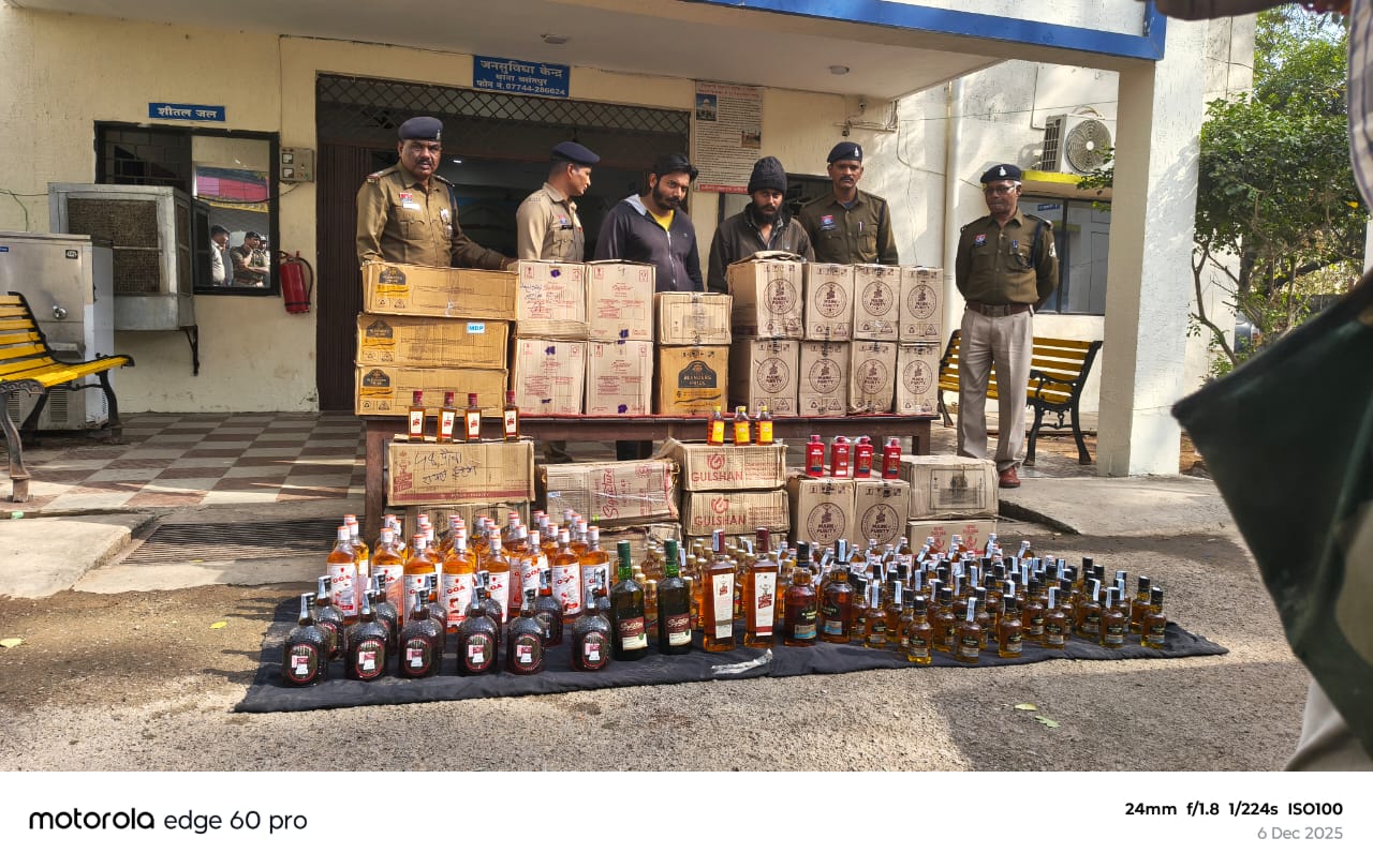 पुलिस अधीक्षक राजनादगांव सुश्री अंकिता शर्मा के निर्देश एवं अतिरिक्त पुलिस अधीक्षक राहुल देव शर्मा तथा नगर पुलिस अधीक्षक वैशाली जैन एवं पुष्पेन्द्र नायक नगर पुलिस अधीक्षक राजनांदगांव के मार्गदर्शन एवं थाना प्रभारी निरीक्षक एमन साहू के नेतृृत्व मे थाना बसंतपुर क्षेत्र में असामाजिक तत्वों एवं अवैध गांजा, शराब एवं नशीले पदार्थाे के बिक्री में संलिप्त लोगों के विरूद्व लगातार अभियान चलाया जा रहा है। इसी कडी में 05.12.2025 को मुखबीर से सूचना प्राप्त हुआ कि काले रंग की अल्टीस गाडी जो कि तुमड़ीबोड से राजनांदगांव की ओर आ रही है, जिसमें भारी मात्रा में शराब भरा हुआ है। सूचना पर हमराह आर0के0नगर चौक के पास नाकाबंदी पाईट लगाकर आते-जाते वाहनो की सघन चेकिंग की जा रही थी। उसी दौरान तुमड़ीबोड की ओर से राजनांदगांव की ओर आ रही अल्टीस कार टोयोटा कंपनी की कार क्रमांक CG 04 J F1800 को रूकवाने पर उक्त वाहन के चालक द्वारा तेजी से कमला कॉलेज रोड़ से कौरिनभांठा की ओर से रायपुर की ओर भाग रहे थे। जिसका पीछा करते हुए ठाकुरटोला चौक के पास घेराबंदी कर पकडा गया। जिसे नाम पता पूछने पर चालक द्वारा अपना नाम मनोज आचार्य पिता शिवन आचार्य उम्र 38 साल निवासी बोरसी दुर्ग प्रगती मैदान के पास थाना पदनाभपुर जिला दुर्ग 02. रोशन साहू पिता शांति लाल साहू उम्र 26 साल निवासी धौराभांठा थाना धमधा जिला बेमेतरा का रहने वाला बताया। जिसकी गाडी तलाशी लेने पर उक्त वाहन में मेकडॉवल नंबर-01 शराब 12 नग बोतल कीमती 9600/रूपये, 02. मेकडावल नंबर -01, 41 पौवा अंग्रेजी शराब कीमती 8,241/रूपये 03. मध्यप्रदेश उत्पादन देशी मदिरा शराब 96 पौवा कीमती 10,176/रूपये 04. रॉयल चैलेन्चर गोल्डी व्हिस्की 47 नग पौवा कीमती 12,220/रूपये 05. रॉयल स्टाग सुपिरियर व्हिस्की 180 नग बांटल कीमती 1,06670/रूपये 06. रॉयल स्टाग सुपिरियर व्हिस्की 138 नग पौवा कीमती 31,188/रूपये 07. सिंगनेचर प्राईम गैंग व्हिस्की 48 नग बांटल कीमती 66,768/रूपये 08. ओल्ड मंक 24 नग बांटल कीमती 17,232/रूपये 09 . ब्लाईन्डर प्राईड प्रीमियम व्हिस्की 12 नग बांटल कीमती 16656/रूपये 10. ब्लाईन्डर प्राईड प्रीमियम व्हिस्की 143 नग पौवा कीमती 42,471/रूपये 11. गोवा व्हिस्की 30 नग बांटल कीमती 13860/रूपये 12. गोवा व्हिस्की 30 नग पौवा कीमती 3300/रूपये एवं घटना में प्रयुक्त अल्टीस कार टोयोटा कंपनी C G 04 J F 1800 कीमती लगभग 04 लाख रूपये एवं 02 नग रेडमी कंपनी का मोबाईल एवं एक नग सैम्संग कंपनी का मोबाईल कीमती करीबन 8000/रूपये जुमला रकम 7,46,414/रूपये जप्त कर आरोपीगणो के विरूद्व थाना बसंतपुर में अपराध क्रमांक 586/25 धारा 34(2) आबकारी एक्ट पंजीबद्व कर आरोपगणो को गिरफ्तार कर न्यायिक अभिरक्षा में पेश किया गया। माननीय न्यायालय द्वारा आरोपगणो का जेल वारंट प्राप्त होने पश्चात जिला जेल राजनांदगांव दाखिल किया गया। मामले में फरार आरो