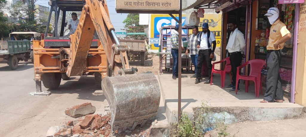 राजनांदगांव 16 मार्च। शहर को अतिक्रमण मुक्त करने एवं सुगम आवागमन के लिए नगर निगम द्वारा समय समय पर निरीक्षण कर अवैध रूप से कब्जा करने तथा अतिक्रमण कर ठेला खोमचा व पसरा लगाने, नाली के उपर अतिक्रमण करने तथा मलमा रखने वालो को समझाईस देने व हटाने की कार्यवाही निगम आयुक्त अतुल विश्वकर्मा द्वारा गठित दस्ता सुनियोजित अभियान चलाकर कार्यवाही कर रही है। टीम के द्वारा दुकान का समान अंदर रखने, अतिरिक्त लगे शेड हटाने समझाईस दी जा रही है। इसी कडी मेें आज अतिक्रमण दस्ता ममता नगर से मोतीपुर तक अभियान चलाकर ठेला व गुमटी हटाये तथा अतिरिक्त लगे शेड, सिड़ी व चबुतरा जेसीबी से तोडा गया।