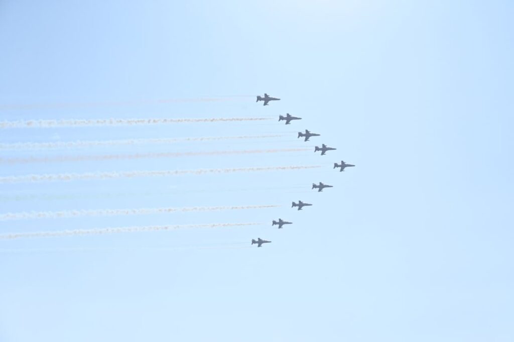 एयर शो में “सूर्यकिरण” की टीम के नौ हॉक-मार्क-123 फाइटर विमानों ने आसमान में हार्ट, डायमंड, लूप, ग्रोवर, डान लाइट, कॉम्बैट तेजस जैसे शानदार फार्मेशन बनाकर लोगों को रोमांचित किया। नीले आसमान में उड़ते लाल-सफेद जेट विमानों द्वारा तिरंगे की आकर्षक ट्रेल छोड़ने पर सेंध जलाशय परिसर तालियों और जय-हिंद के नारों से गूंज उठा। हज़ारों की संख्या में मौजूद नागरिक, युवा और बच्चे लगातार विमानों की कलाबाजियों को अपने कैमरों और मोबाइलों में कैद करते रहे।