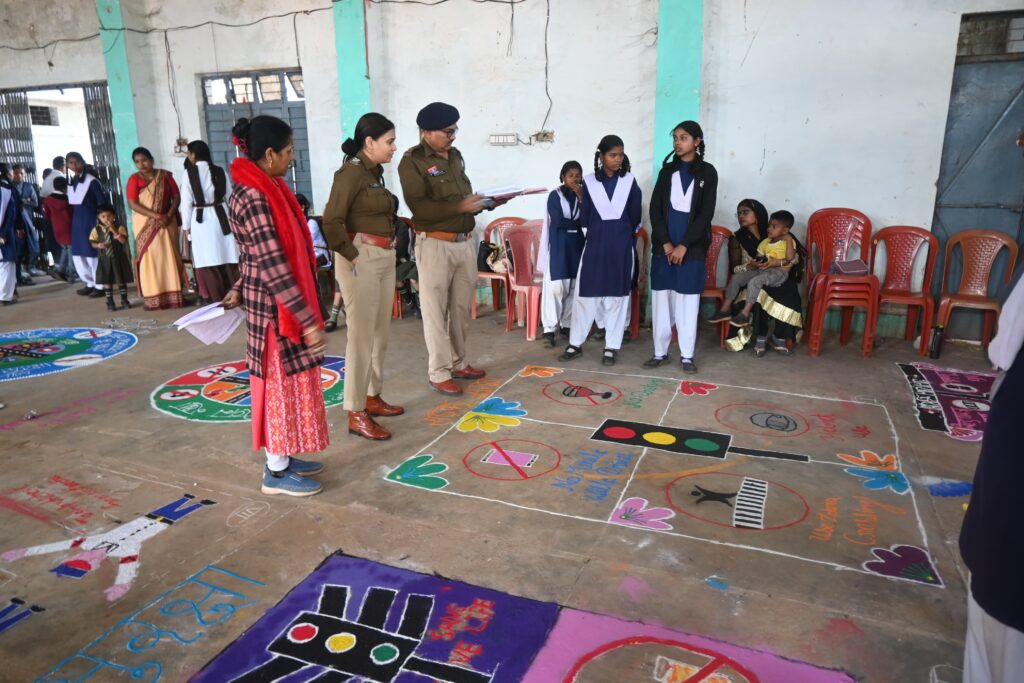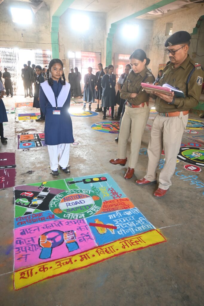 पुलिस अधीक्षक वाय.पी. सिंह(भा. पु. से), के निर्देशन में अतिरिक्त पुलिस अधीक्षक देवचरण पटेल, मुख्यालय उप पुलिस अधीक्षक मोहला श्रीमती नेहा पवार के मार्गदर्शन में यातायात प्रभारी शेषनारायण देवांगन एवं टीम द्वारा राष्ट्रीय सड़क सुरक्षा माह 2026 के आयोजन में सामुदायिक भवन दशहरा मैदान मोहला में यातायात विभाग द्वारा रंगोली प्रतियोगिता का आयोजन किया गया जिसमें मोहला के शासकीय ITI कॉलेज, शासकीय कन्या उच्चतर माध्यमिक विद्यालय, सरस्वती शिशु मंदिर, स्वर्गीय लाल श्याम शाह इंग्लिश मीडियम स्कूल, गांधी विद्या मंदिर, पी.एम. श्री, DNT पब्लिक स्कूल के छात्र-छात्राओं ने बढ़ -चढ़ रंगोली प्रतियोगिता में सहभागिता दी और प्रतियोगिता का विषय सड़क सुरक्षा –जीवन रक्षा पर रंगोली बनाई गई जिसमें निर्णायकगण के निर्णय के अनुसार