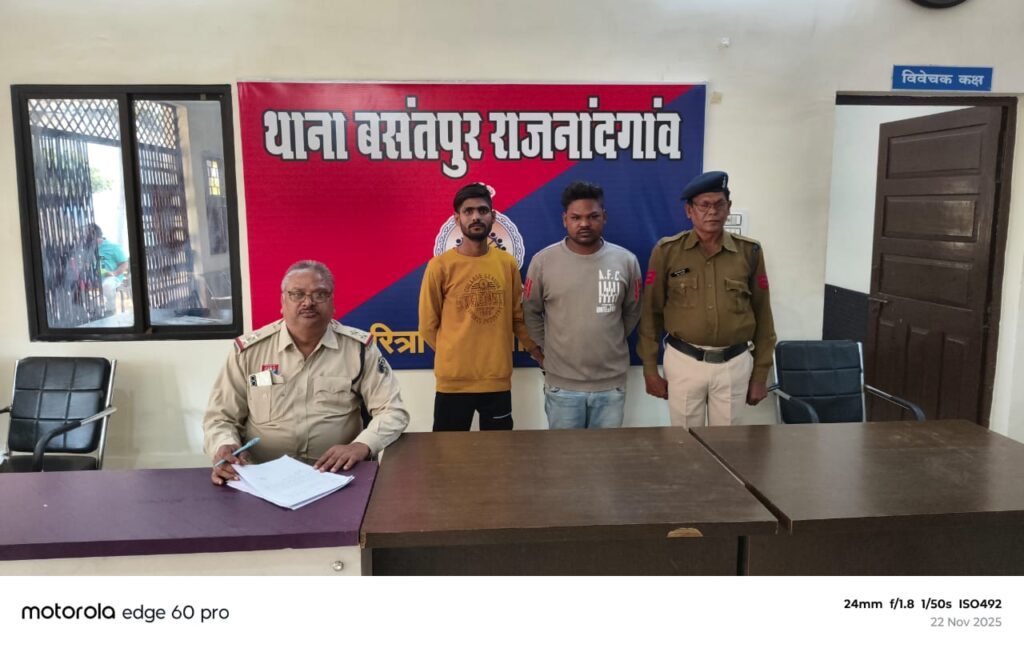 प्रार्थी थाना हाजिर आकर लिखित आवेदन दिया कि यह अपने साथियो के साथ गुरूद्वारा के पीछे गरम कपडा का दुकान लगाता है। 21-11-2025 के रात्रि 08ः00 बजे यह अपने दुकान में गरम कपडा बेच रहा था उसी समय राहुल निषाद और चितेश उपाध्याय निवासी जमातपारा राजनांदगांव के शराब के नशे में आकर इसके साथ गााली गुप्तार करने लगे और शराब पीने के लिए पैसे की मांग करने लगे। प्रार्थी द्वारा पैसे देने से मना करने पर जान से मारने की धमकी देकर इसे व इसके छोटे भाई के साथ मारपीट किये है। रिपोर्ट पर थाना बसंतपुर में अपराध क्रमांक 548/25 धारा 296,115(2) ,351 (2) ,119(2),3(5) भारतीय न्याय संहिता के तहत् अपराध पंजीबद्व कर विवेचना में लिया गया। प्रकरण के विवेचना के दौरान आरोपीगणो के निश्चित ठिकानो पर रेड कार्यवाही आरोपीगणो को हिरासत में लेकर थाना लाकर पूछताछ किया गया। जो जुर्म करना स्वीकार किये। आरोपीगणो को विधिवत् गिरफ्तार कर माननीय न्यायालय के समक्ष पेश किया गया एवं न्यायालय से आरोपीगणो का जेल वारंट प्राप्त होने पश्चात जेल दाखिल किया गया।