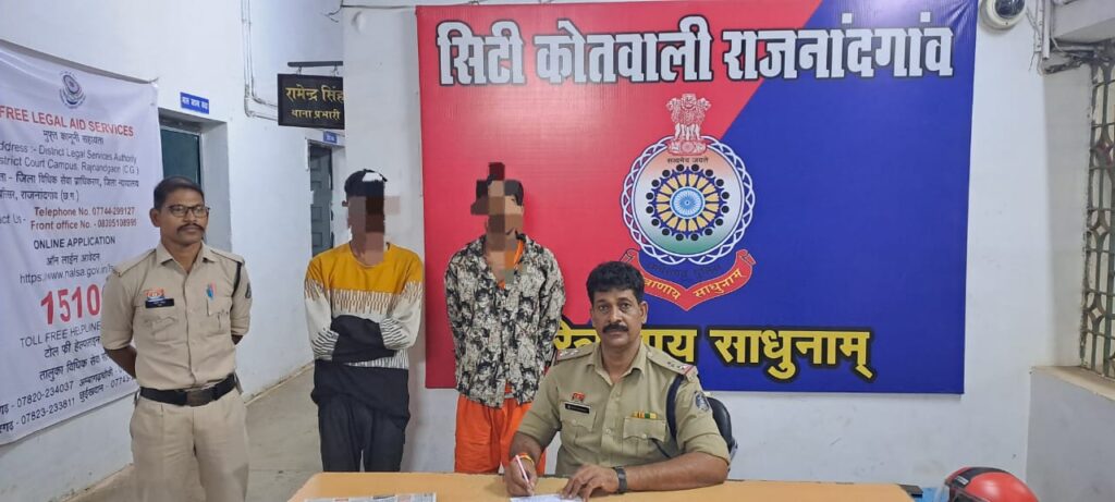 निरीक्षक रामेन्द्र सिंह थाना प्रभारी कोतवाली के नेतृत्व में तत्काल पुलिस स्टॉफ को रवाना आरोपियान (1) विशाल बांसफोड पिता स्व0 चंद्रिका बांसफोड़ उम्र 19 वर्ष पता पता बैगापारा अटल आवास लखोली थाना कोतवाली जिला राजनंादगांव (छ0ग0) (2) राहुल चौहान पिता कुमार सिंह चौहान उम्र 18 वर्ष पता बैगापारा अटल आवास लखोली थाना कोतवाली जिला राजनांदगांव (छ0ग0) एवं एक विधि से संघर्षरत बालक को घेराबंदी कर पकड़े, पूछताछ पर जुर्म स्वीकार किये जिसके कब्जे से धटना में प्रयुक्त मोटर सायकल कमांक एसपी साईन कमांक सीजी 08 ए.वाय.- 2197 ब्लैक एंव रेड कलर, लोहे का धारदार चाकू, रेडमी मोबाईल, नगदी रकम 400 रूपये जप्त कर आज दिनांक 25.08.2025 को विधिवत गिरफ्तार कर माननीय न्यायालय के समक्ष पेष किया गया जेल वारंट प्राप्त होने पर जिला जेल राजनांदगांव एवं विधि से संधर्षरत बालक को बाल संप्रेक्षिण गृह में दाखिल किया गया।