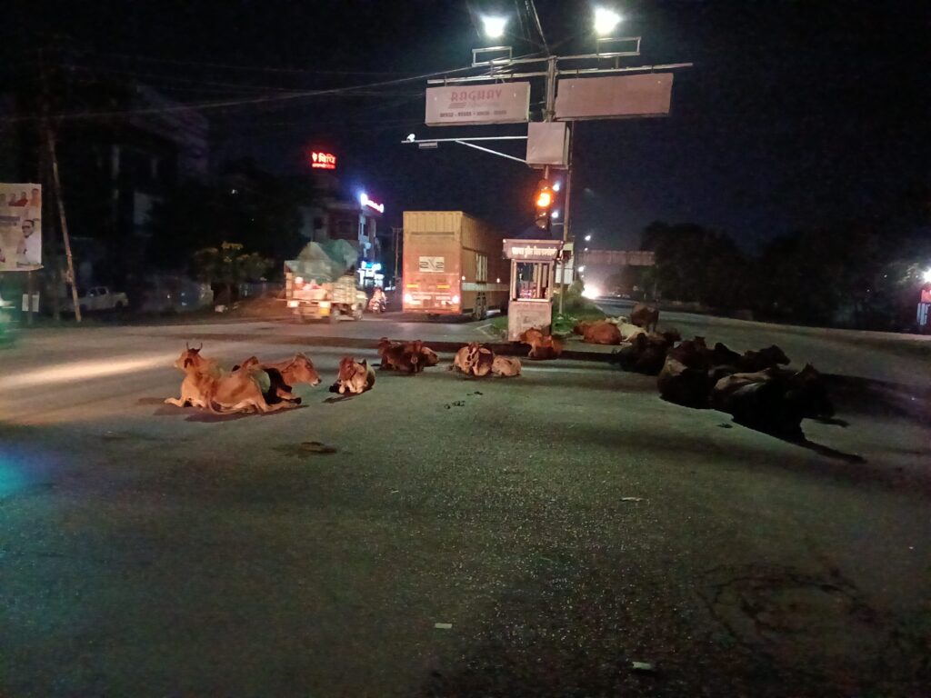 बिना वेतन आवारा पशुओं से करवाया जा रहा कार्य, शहर में रात्रिकालीन ट्रैफिक व्यवस्था आवारा पशुओं के हाथ में…..
